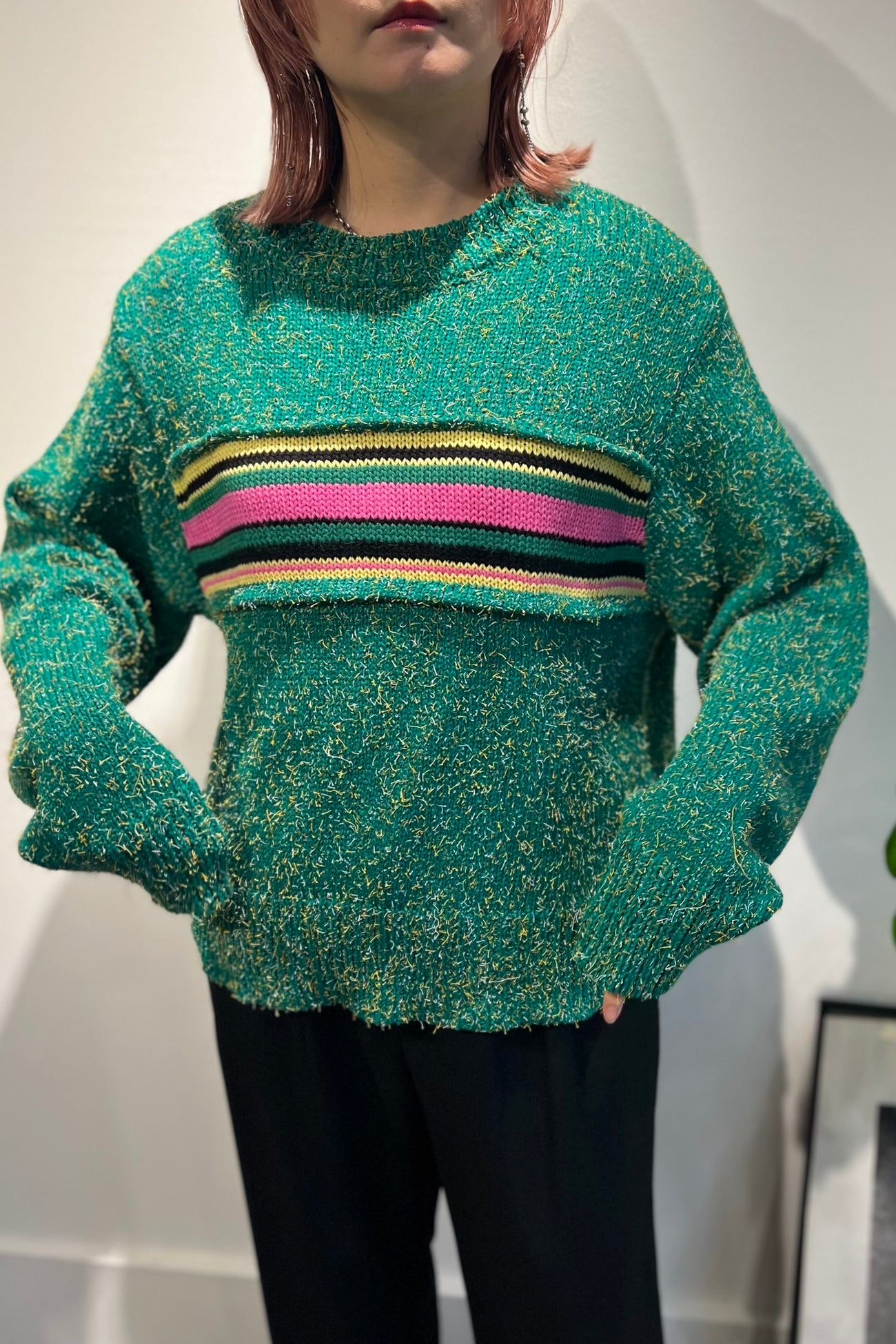 ボーダーラインがポップでキャッチーなミックスカラーニット。シンプルになりがちなデニムスタイルなど、カジュアルなパンツスタイルにおすすめです♪