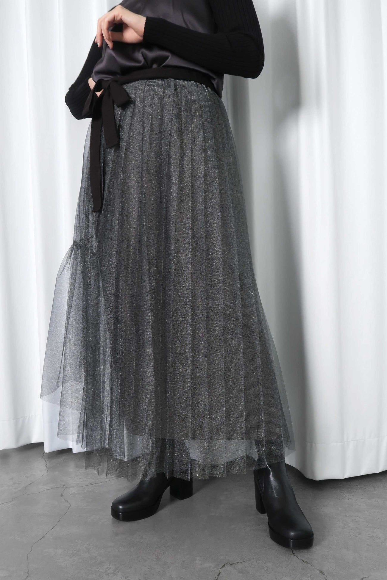 煌めくラメが、華やかでエレガントなチュールスカート。一枚で着映えするので、ドレスアップしたい時にもおすすめです♪