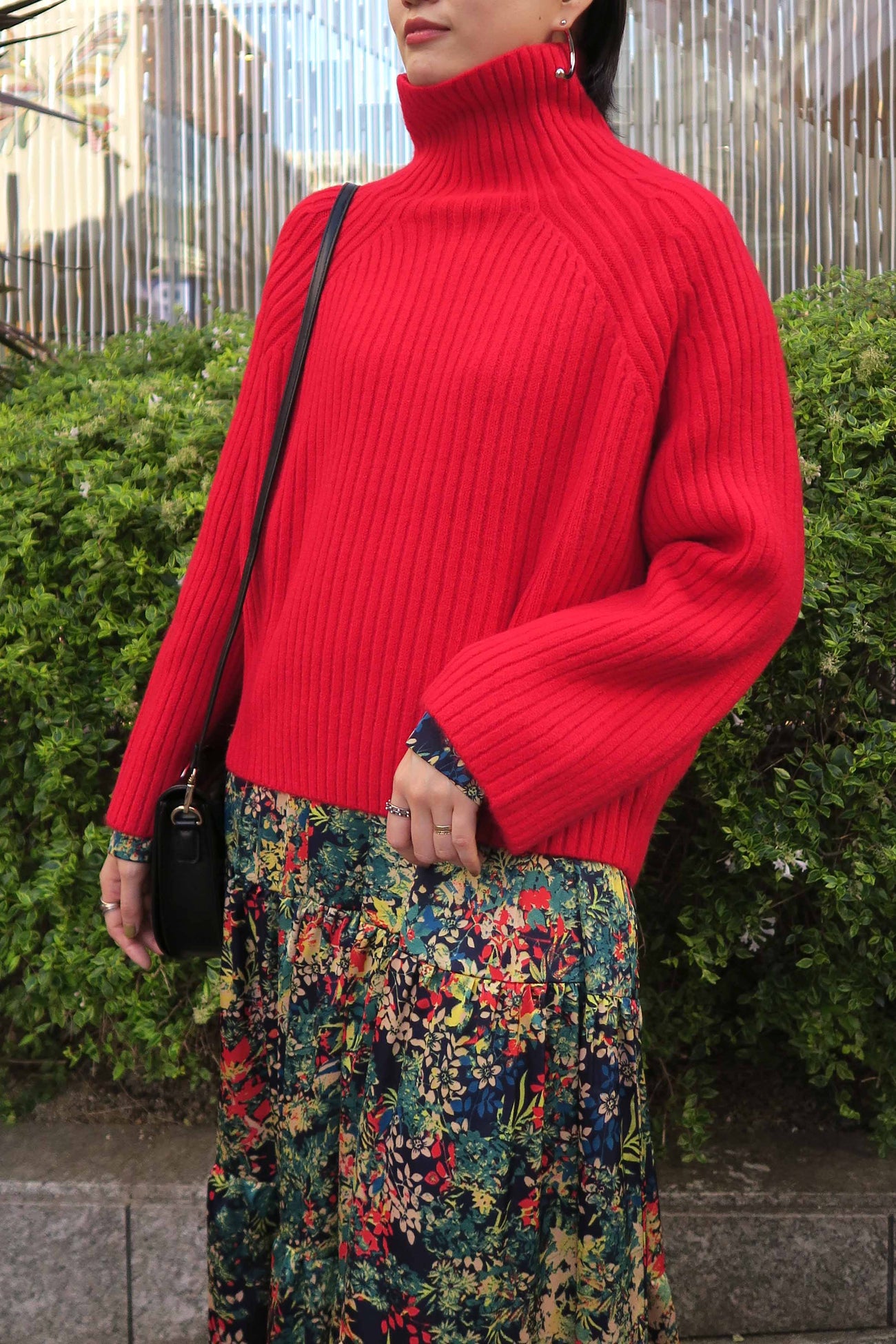 大人気ミカーレミカーレのハイネックリブニットは、今年は鮮やかなウィンターカラーに。オンオフ使いやすい程よいサイズ感で、レイヤードスタイルもおすすめ!一枚着るだけで主役級のニットです♪